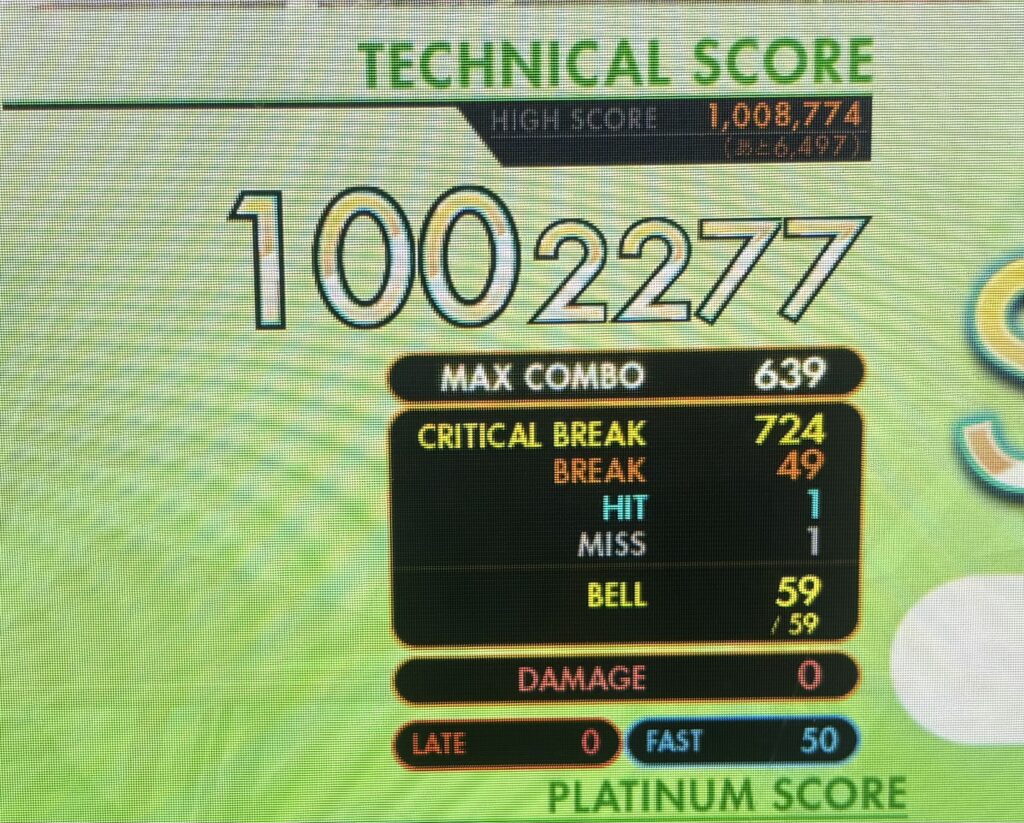 曲のはじめの方は上の方に目線を置く事ができるが、だんだんと判定結果が表示される辺りに視線が落ちていく。
