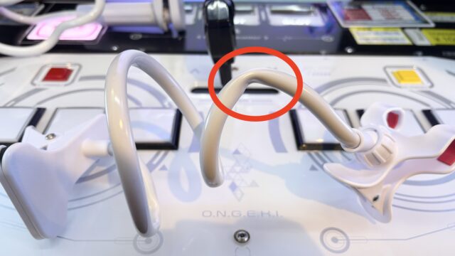翌日、取り急ぎ100均でスマホアームを購入し、オンゲキのプレイを撮影してみたところ、ゲームと打鍵音が全然合っていなくて驚愕。