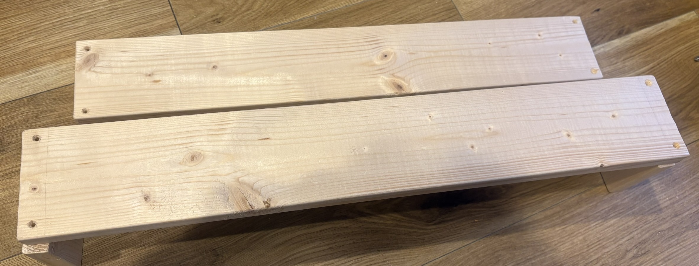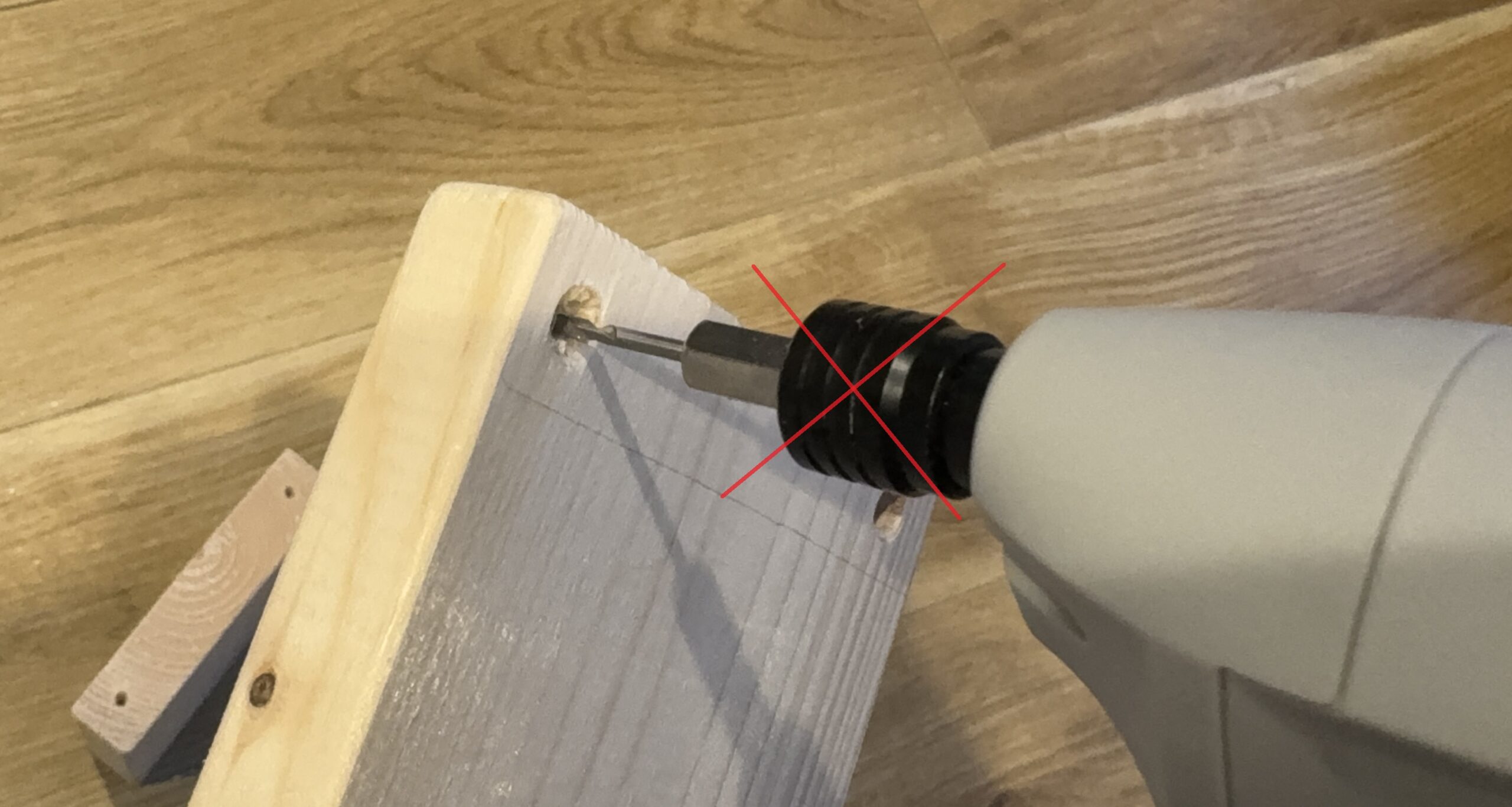 横辺と縦辺の木材をあわせた状態で穴を開けたほうがずれないです。