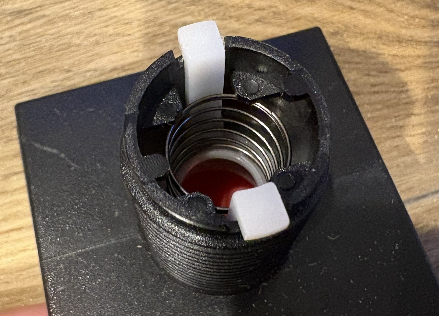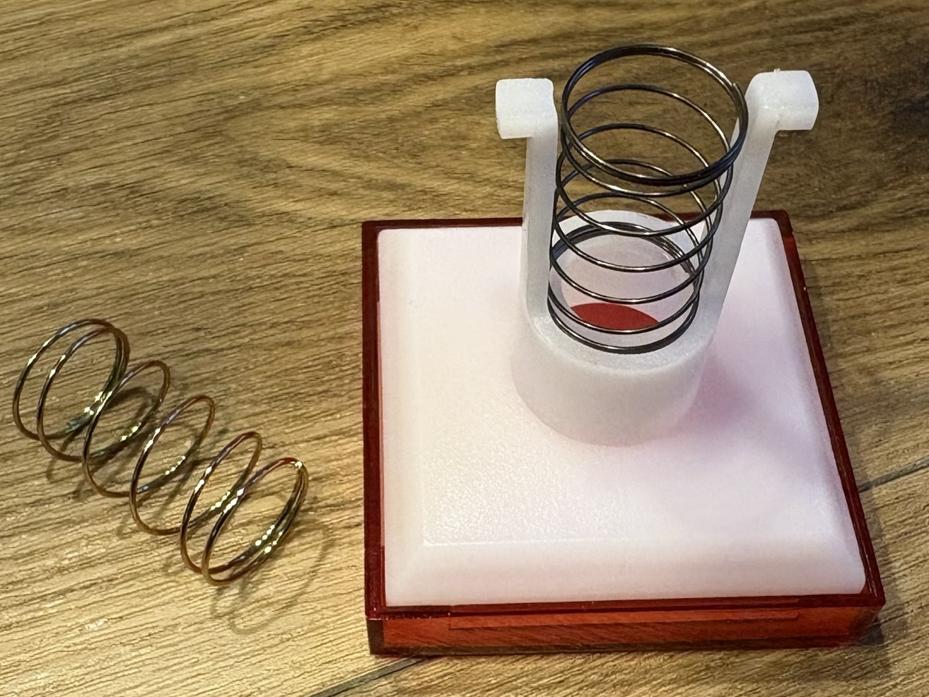 ボタンを組み立てる際は以下のように若干バネが変形しますが問題ないです。