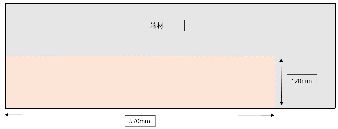 天板のサイズは以下のとおりとなるので、収まるサイズのものを購入し、土台木材と一緒にカットしてもらいます。