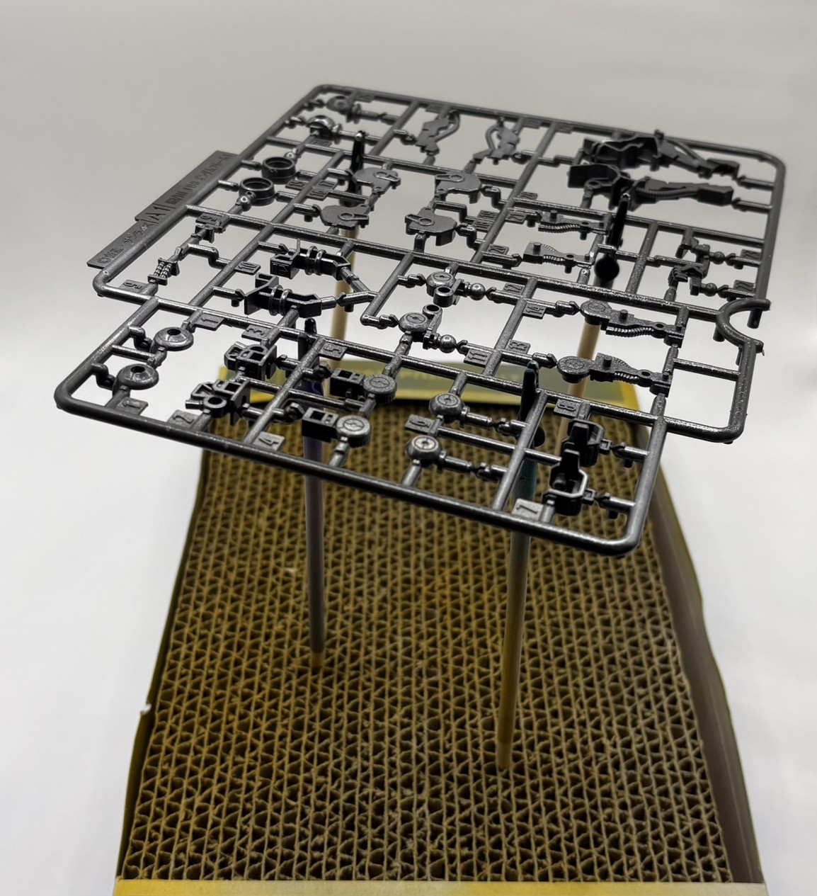 パーツを切り離す前のランナーごとスプレーで吹くだけ。
