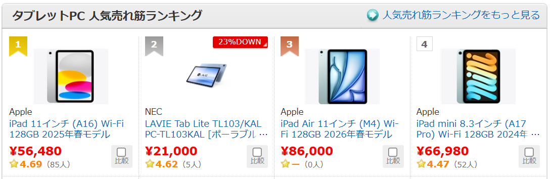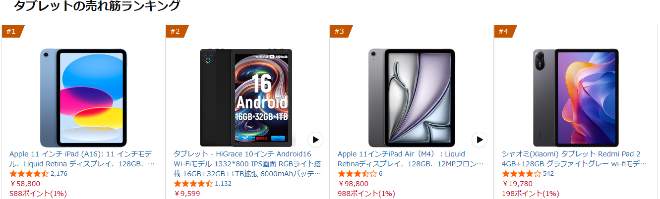 ①タブレット売れ筋ランキング1位